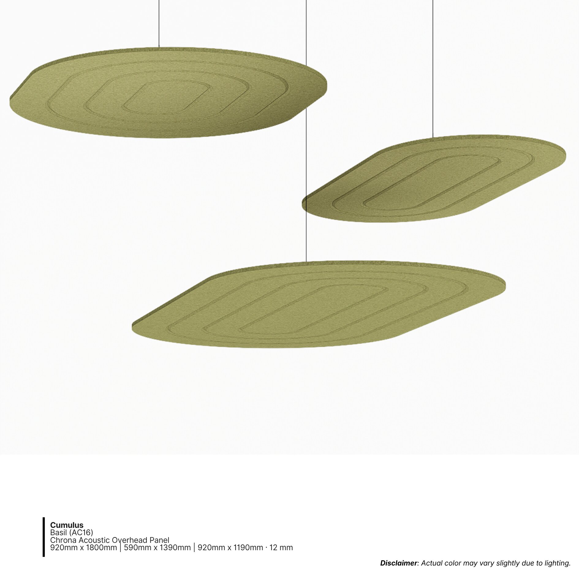 Inspired by the brilliance of the sun’s closest approach, Cumulus captures the essence of light and warmth in every surface. This overhead acoustic panel blends sleek modern design with high-performance sound absorption, creating spaces that feel both open and acoustically balanced. Crafted with precision from sustainable acoustic materials, Chrona Cumulus delivers exceptional reverberation control without compromising aesthetic harmony. Its refined texture and radiant tone make it a perfect fit for auditoriums, offices, studios, and contemporary interiors seeking clarity and calm.