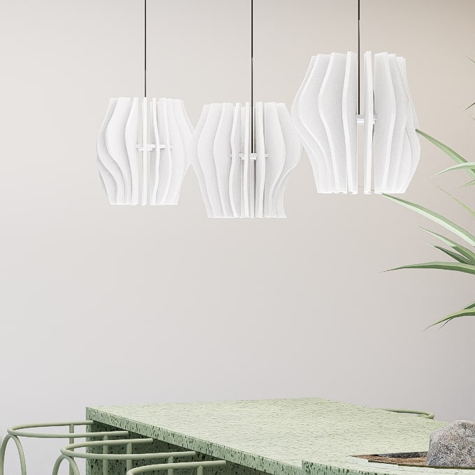 Harmony is a sculptural ceiling acoustic panel system designed to balance sound control with visual rhythm. Suspended from the ceiling, Harmony transforms overhead space into an acoustic feature that reduces reverberation while adding depth, movement, and architectural interest to interiors.