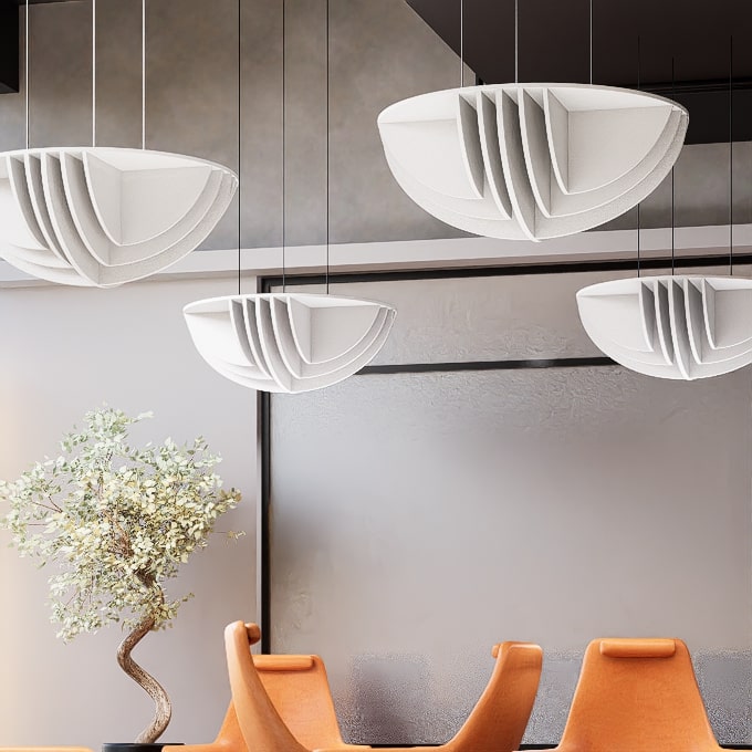 Nimbus embodies the essence of refined minimalism and acoustic precision. Designed for environments that value tranquility and clarity, this overhead panel provides superior sound absorption without compromising visual harmony. Its clean geometry and soft tonal presence make it a seamless addition to both modern workspaces and intimate interiors. Crafted with advanced acoustic materials, Nimbus effectively controls reverberation and enhances speech intelligibility, creating a balanced atmosphere ideal for concentration, collaboration, or relaxation. Suspended elegantly overhead, it transforms ceilings into functional soundscapes — offering both aesthetic refinement and acoustic comfort.